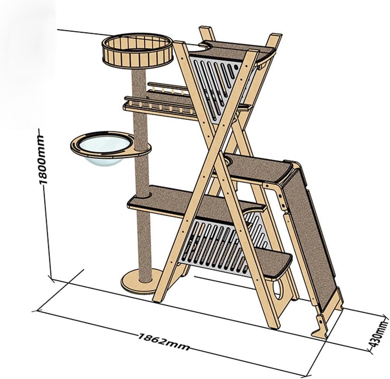 • The X-shaped cat climbing frame increases the length of the pedal (up to 87cm), which is more suitable for large cats lying flat; the column and the pedal are increased to a double structure, which makes the stability higher.
