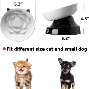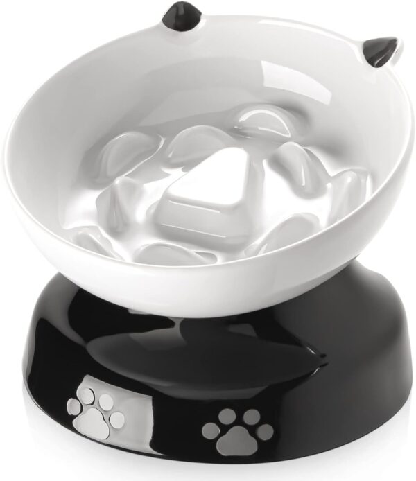 Ceramic Cat Slow Feeder, Elevated Cat Food Bowl Tilted Design, Dog Slow Feeder Bowl no Black Chin, Cat Shape Slow Feeder for Dry and Wet Food
