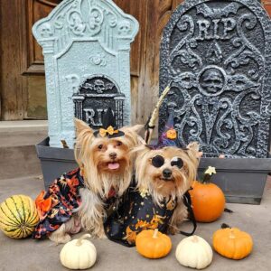 - Classic and casual design with a halloween pattern and eye-catching color. The outfit is further decorated with orange ribbon to enhance your pet‘s cuteness.
